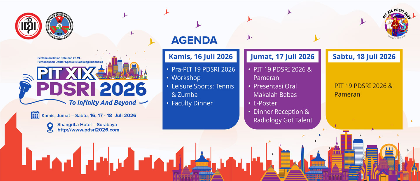 Sejalan dengan semangat tersebut, Kota Surabaya, mendapat kehormatan menjadi tuan rumah Pertemuan Ilmiah Tahunan ke-19 Perhimpunan Dokter Spesialis Radiologi Indonesia (PIT 19 PDSRI 2026) yang mengusung tema “To Infinity and Beyond”, dan akan diselenggarakan di ShangriLa Hotel Surabaya pada 16 – 18 Juli 2026. Kegiatan ini akan menghadirkan para narasumber radiologi terkemuka dan para pakar di bidangnya, menjadi wadah strategis untuk memperdalam ilmu, berbagi pengalaman, memperluas jejaring profesional, serta menumbuhkan ide-ide inovatif yang inspiratif. Kota Surabaya diharapkan dapat memberikan suasana yang hangat bagi diskusi ilmiah sekaligus mencerminkan semangat kolaborasi dan keberagaman yang menjadi tujuan utama pertemuan ini.