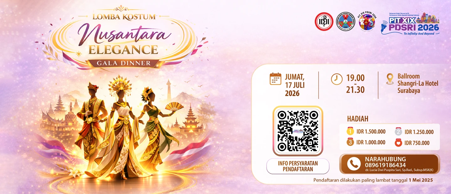 Sejalan dengan semangat tersebut, Kota Surabaya, mendapat kehormatan menjadi tuan rumah Pertemuan Ilmiah Tahunan ke-19 Perhimpunan Dokter Spesialis Radiologi Indonesia (PIT 19 PDSRI 2026) yang mengusung tema “To Infinity and Beyond”, dan akan diselenggarakan di ShangriLa Hotel Surabaya pada 16 – 18 Juli 2026. Kegiatan ini akan menghadirkan para narasumber radiologi terkemuka dan para pakar di bidangnya, menjadi wadah strategis untuk memperdalam ilmu, berbagi pengalaman, memperluas jejaring profesional, serta menumbuhkan ide-ide inovatif yang inspiratif. Kota Surabaya diharapkan dapat memberikan suasana yang hangat bagi diskusi ilmiah sekaligus mencerminkan semangat kolaborasi dan keberagaman yang menjadi tujuan utama pertemuan ini.